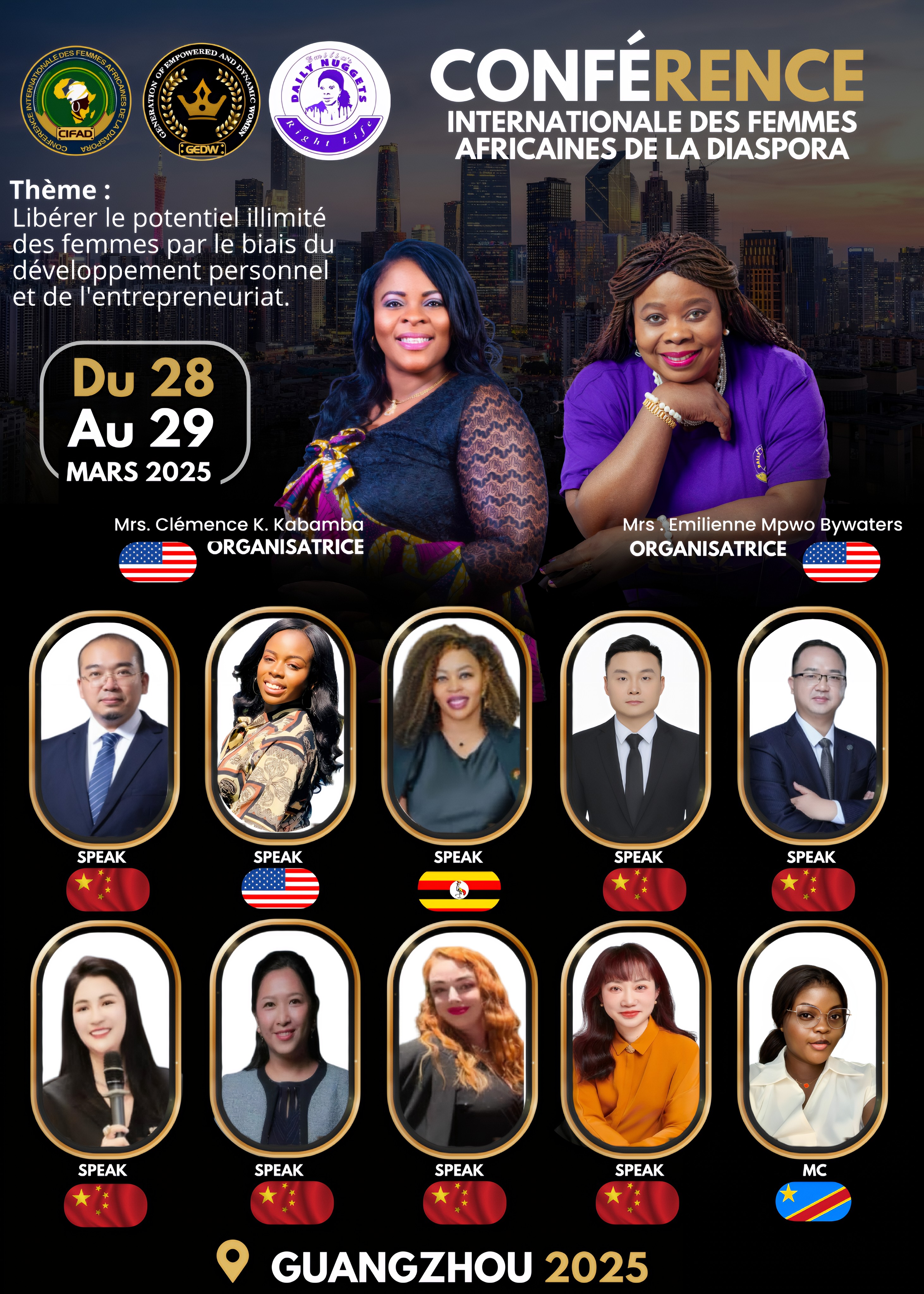 La Conférence Internationale des Femmes Internationales de la Diaspora, tenue à Guangzhou les 28 et 29 mars 2025 , a été un véritable succès. Cet événement d’envergure a réuni des leaders, des entrepreneurs et des investisseurs chinois dans un élan collectif visant à renforcer les opportunités économiques entre la Chine, la République Démocratique du Congo et l’ensemble du continent africain .